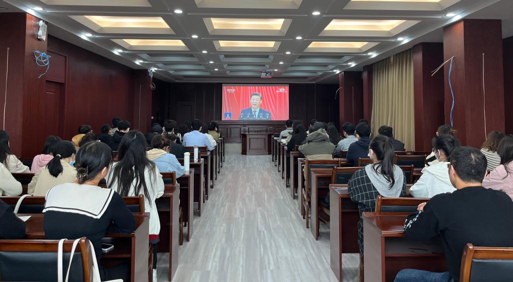 2022年10月16日上午10时,中国共产党第二十次全国代表大会于北京人民大会堂隆重开幕,习近平总书记代表第十九届中央委员会向大会作报告。根据10月14日学校党委印发的通知要求,广大师生员工集中收听收看了大会开幕会盛况。