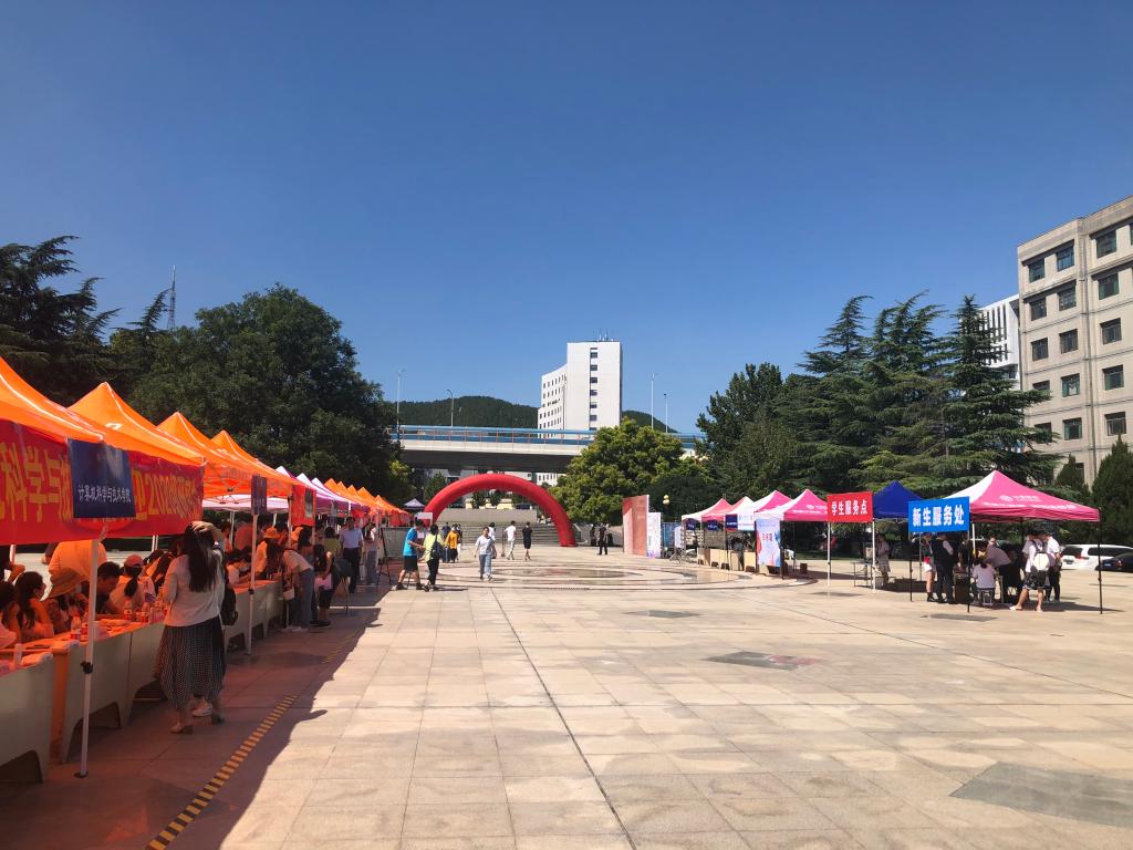 上午8点30分,学校研究生迎新工作正式拉开帷幕,各相关部门和各学院在燕山校区西广场和舜耕校区致远路已做好准备,等待着新生前来报到。迎新现场气氛热烈,燕山、舜耕两校区架起彩虹门,悬挂着“热烈欢迎研究生新同学”的条幅;巨型迎新展板上,“克明峻德,格物致知”的校训异常醒目;一排排迎新帐篷下,身着具有学院特色文化衫的志愿者们在其中忙碌。