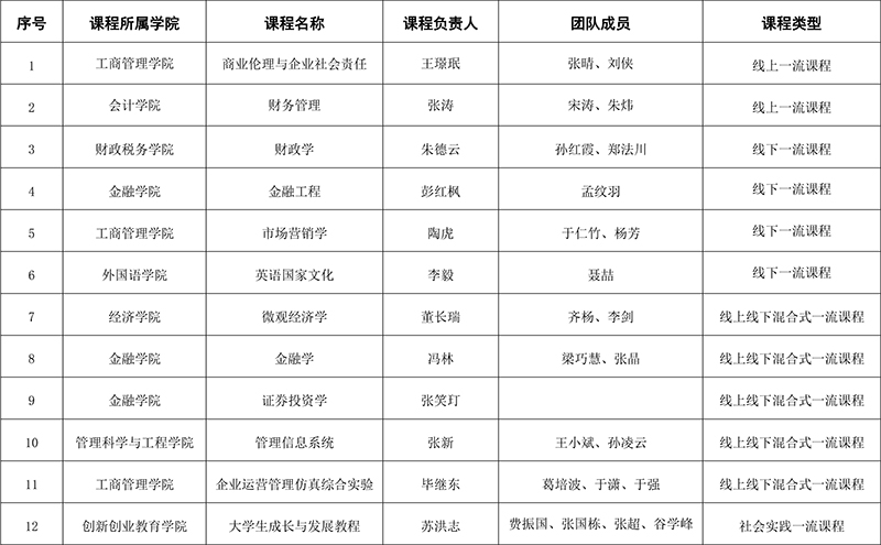 山东财经大学首批国家级一流本科课程名单