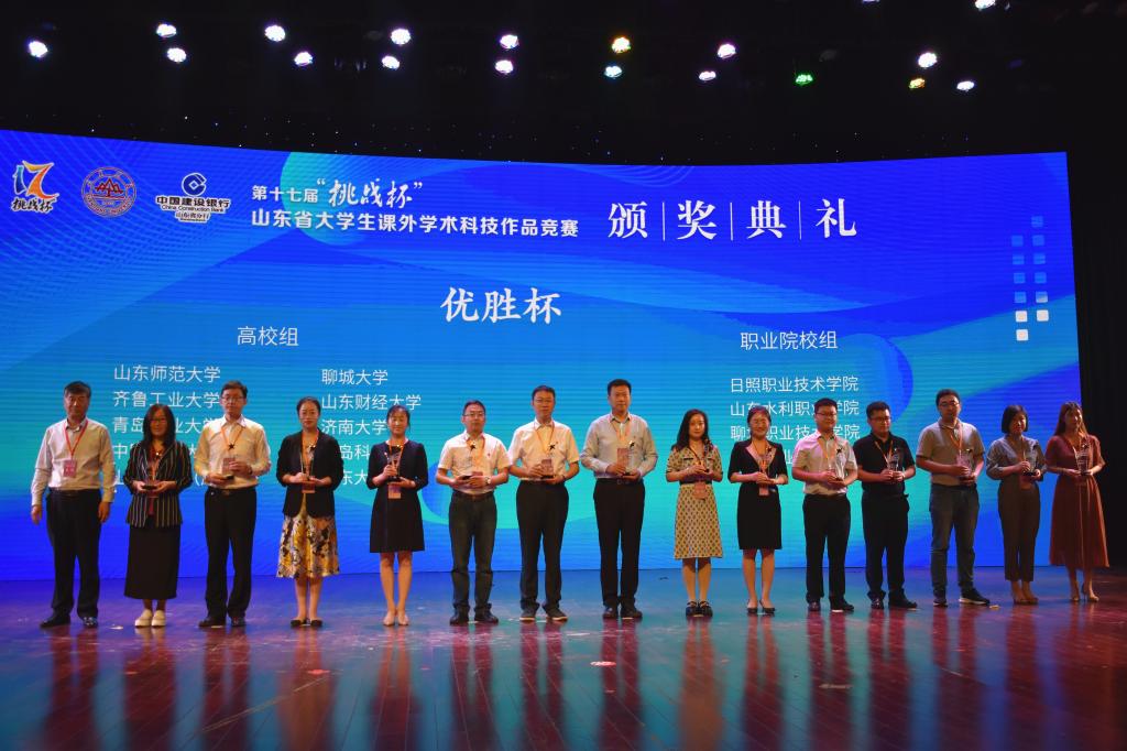 6月3日上午,第十七届“挑战杯”山东省大学生课外学术科技作品竞赛颁奖典礼在山东大学音乐厅落下帷幕。学校喜获特等奖3项,推报国赛作品6件,推报省赛作品数量、推报国赛作品数量均位列全省首位,荣获大赛优胜杯和优秀组织奖。