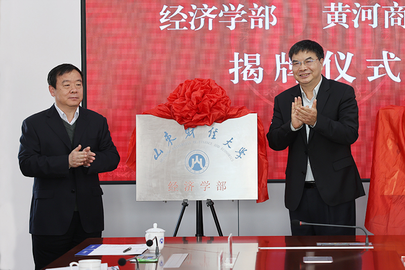 校党委书记王邵军与校长赵忠秀为经济学部和黄河商学院揭牌。