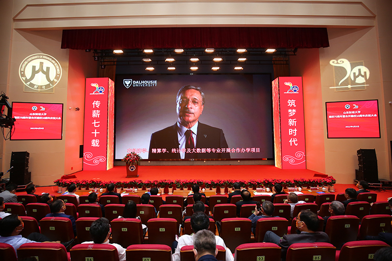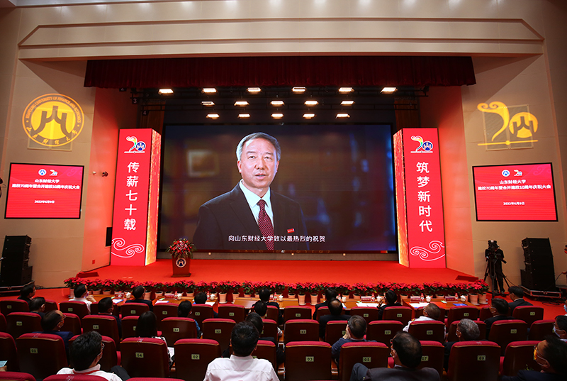 庆祝大会上,山东财经大学原校长、现任西南财经大学校长、党委副书记卓志,达尔豪斯大学校长迪普•赛尼等国(境)内外高校代表发来祝贺视频,回顾了与山东财大的交流合作,祝愿山财大继往开来矢志不渝,未来更加美好。