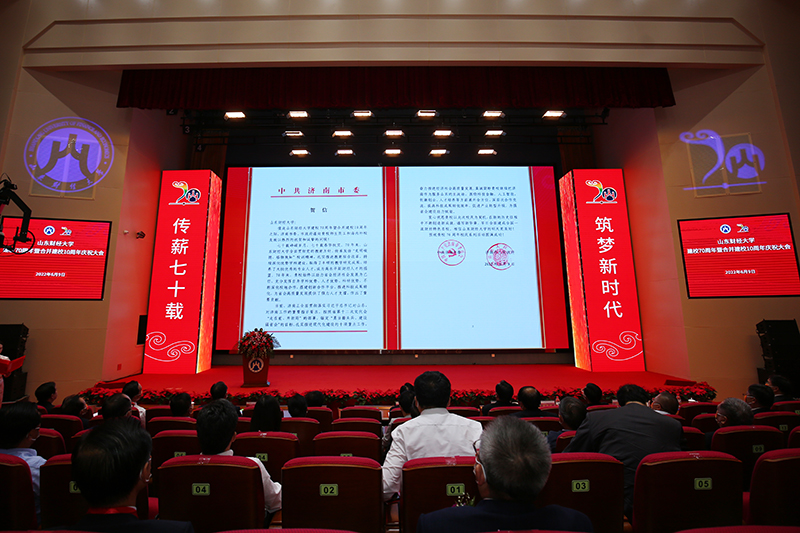 6月8日,济南市委、市政府发来的贺信说,70年来,山东财经大学全面贯彻党的教育方针,传承发扬“克明峻德 格物致知”校训精神,培养了大批优秀的专业人才,成为高水平新财经人才的摇篮;学校始终以助力省会经济社会发展为己任,充分发挥自身学科优势、人才优势、科研优势,不断深化校地合作,搭建创新合作平台,推进科技成果转化,为省会高质量发展提供了强力人才支撑,作出了重要贡献。衷心祝愿贵校以此次校庆为契机,在新的历史征程中不断创造新成就、谱写新华章,早日全面建成全国一流财经特色名校。