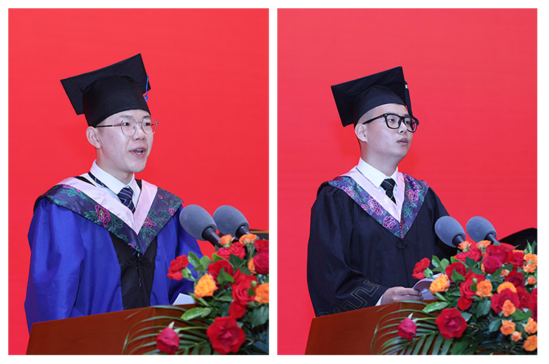 研究生毕业生代表曹云鹏、本科生毕业生代表刘吉祥在发言中先后表达了对学校改革发展的自豪、对学校的不舍与感激、在学校学习生活的美好记忆以及对师生的美好祝福。
