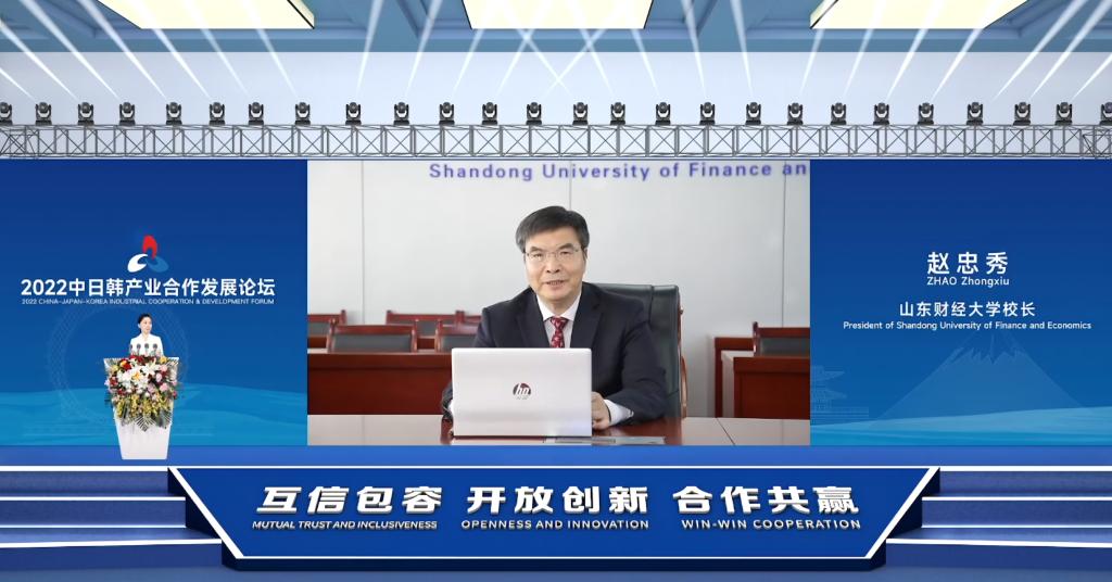 2022年9月23日,第八届中日韩产业博览会开幕式暨2022中日韩产业合作发展论坛在潍坊通过视频形式举行。中国贸促会会长任鸿斌,省委副书记、省长周乃翔,联合国前秘书长、博鳌亚洲论坛理事长潘基文,中日韩合作秘书处秘书长欧渤芊等在开幕式上致辞。我校校长、中日韩研究院院长赵忠秀应邀出席,并作了题为“RCEP签署对中日韩产业合作影响及发展建议”的主旨演讲。