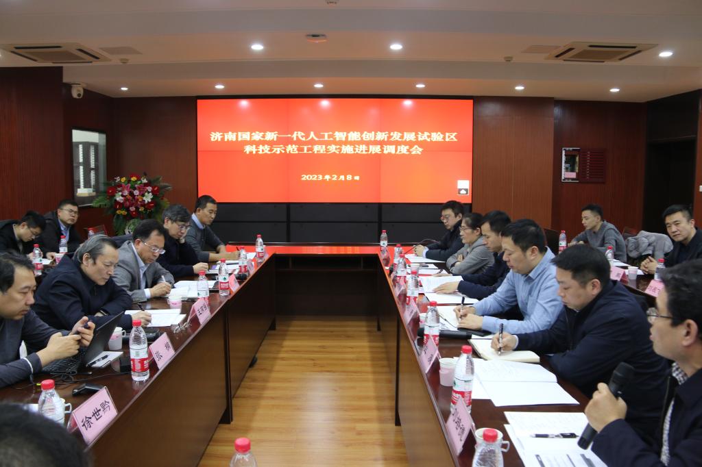 2023年2月8日,济南国家新一代人工智能试验区重大科技示范工程调度会在燕山校区举行。副校长谢申祥出席会议并致辞。国家新一代人工智能社会实验总体专家组组长苏竣教授,省科技厅、济南市科技局、我校管理科学与工程学院及项目合作单位负责人出席会议。