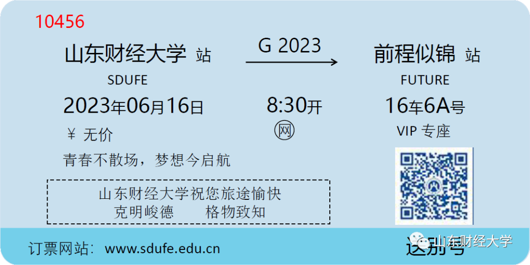 亲爱的同学们!迈出学校的大门,你的身份将成为山财大的校友,成为山财大的一张张名片。无论你走多远,无论成功与否,母校都会在这里深情眺望,山财大永远是你人生旅途中栖息的港湾、坚强的后盾和精神的家园!