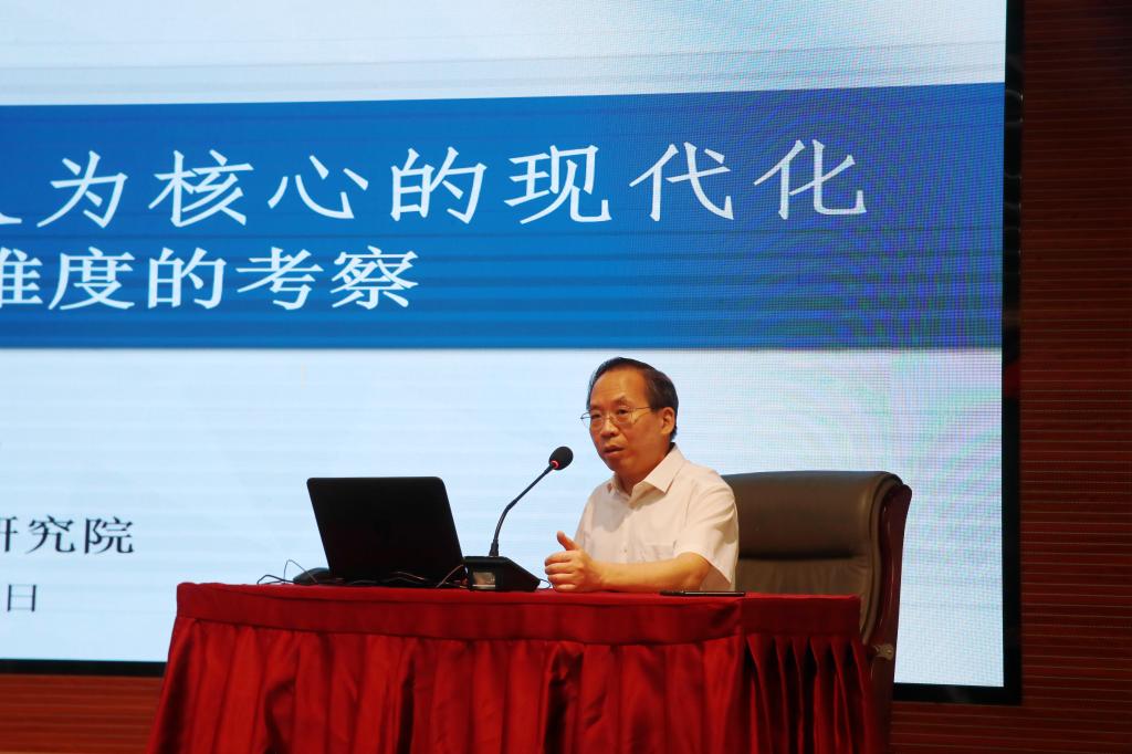 会议主旨演讲环节由谢申祥主持。刘尚希作了题为《中国式现代化是以人为核心的现代化——基于历史维度的考察》的主旨演讲。他认为“中国式现代化”是重大理论和实践创新,中国式现代化的底层逻辑要以人为本;人的现代化就是让“传统人”变为“现代人”,充分发挥人的主体性、创造性和文明性。