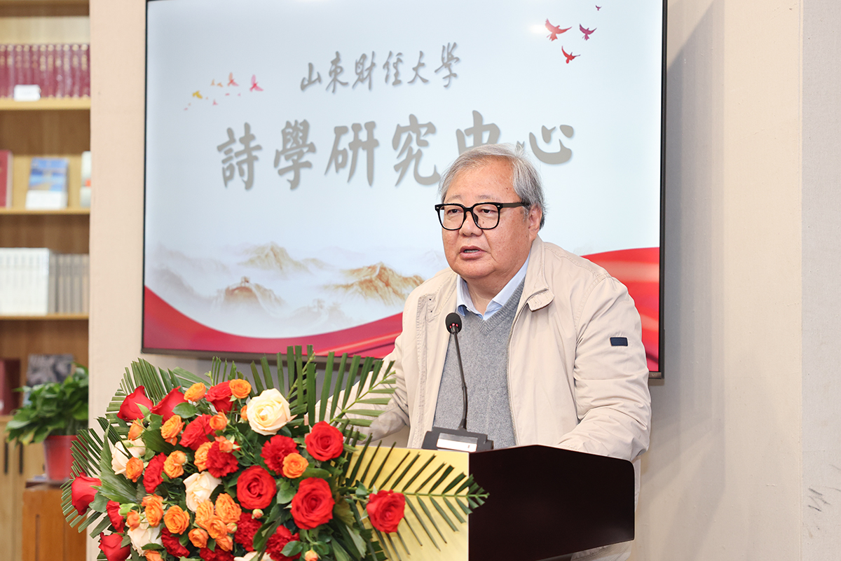 11月8日上午,山东财经大学诗学研究中心成立典礼暨首届诗学论坛在舜耕校区新落成的诗学讲堂盛大举行。