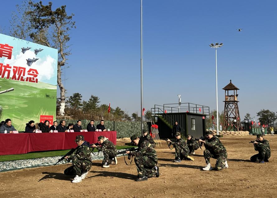 揭牌仪式结束后,军事表演开始。身着迷彩服、英姿飒爽的参训学生开展了队列动作、战术合成、模拟射击、战车演训四个表演项目。同学们不畏寒冷、斗志昂扬,展现出新时代大学生良好的精神面貌和军事素质。