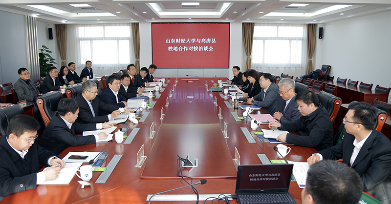 2019年12月12日上午,高唐县代表团访问我校并举行校地合作对接洽谈会。我校校长赵忠秀,我校88级计统专业校友、高唐县县长刘奎忠出席会议并致辞。副校长张新主持会议。高唐县相关县领导、相关部门负责人、中国创投委负责人和我校相关职能部门负责人参加对接洽谈。