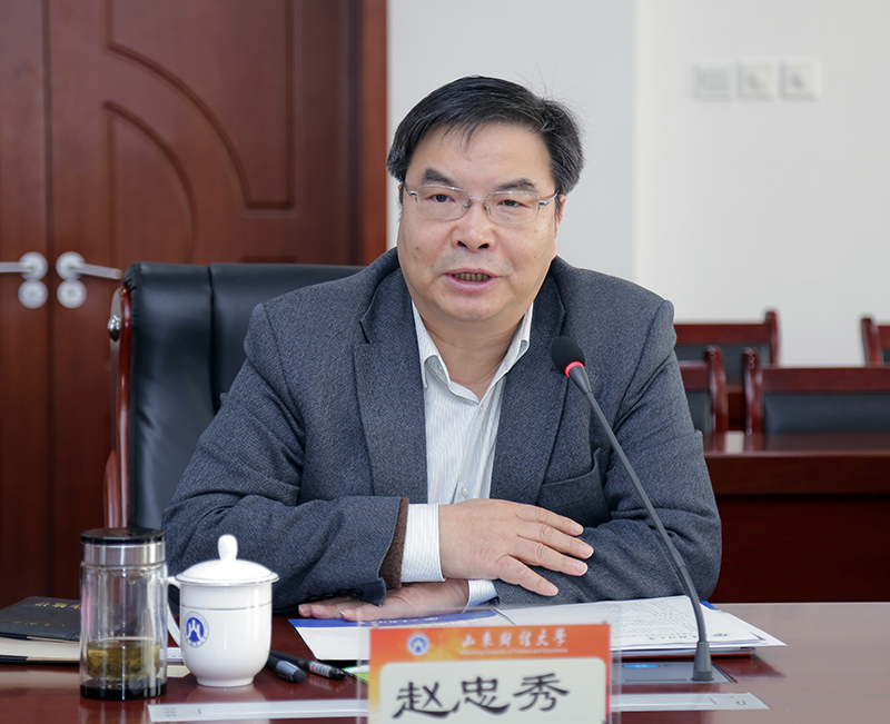 赵忠秀对高唐县代表团一行表示热烈欢迎,他介绍了学校近年来的发展情况和学校的办学特色、学科优势,重点介绍了学校在服务国家重大战略和山东经济社会发展中的相关举措,特别是围绕新旧动能转换、乡村振兴等方面的社会服务工作。他表示,在服务地方经济发展中,学校愿与地方携手,加强互访,建立机制化的校地合作运行方式,把高唐作为我校以服务山东县域发展为目标的校地合作模式新典范,在服务高唐经济社会发展中,总结独特经验,打造齐鲁样本,发挥全省推广价值。