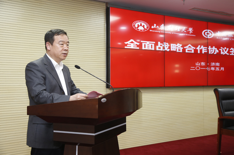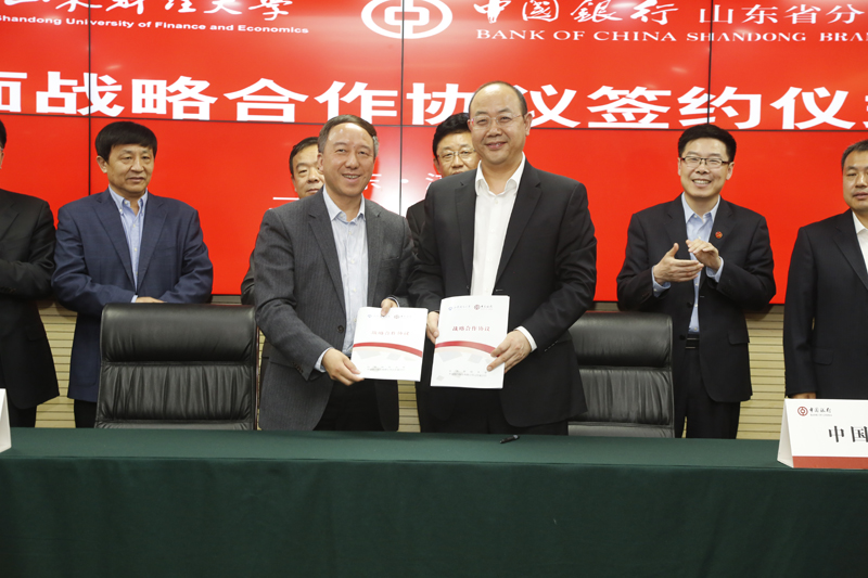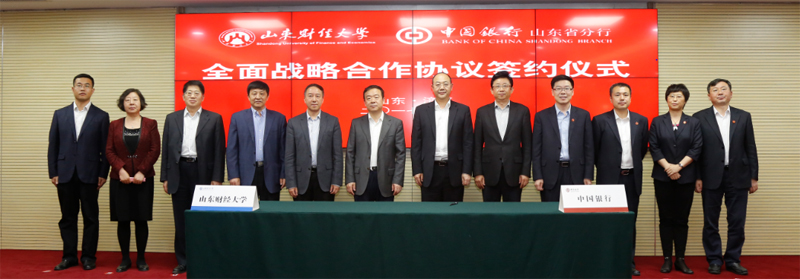 2017年5月5日下午,学校与中国银行山东省分行战略合作协议签署仪式在中国银行山东省分行举行。学校党委书记王邵军,校长卓志,副校长綦好东,中国银行山东省分行党委书记、行长王锡峰,副行长杨青,副行长景在伦出席签约仪式。校长办公室、学生工作处、财务处等部门负责人及中国银行山东省分行部分部门负责人参加协议签署仪式。