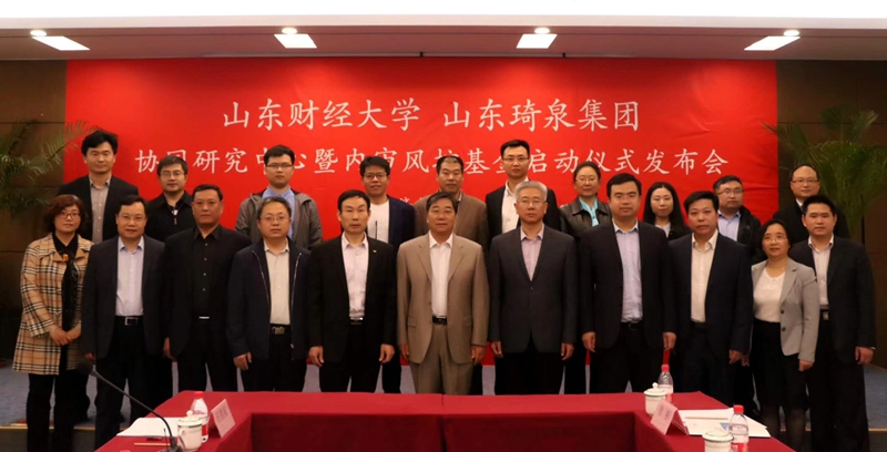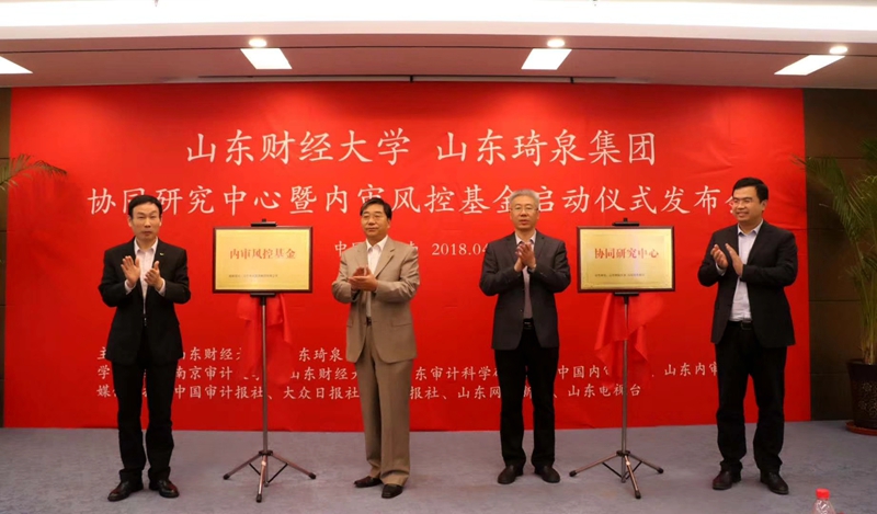 2018年4月24日下午,我校与山东琦泉集团共建“多样性经济内审协同研究中心”,山东省内部审计师协会会长陈朝豹、副校长张新、山东琦泉集团副董事长马文德、副总经理董统玺共同为研究中心和内审风控基金设立揭牌。合作发展处、会计学院负责人、部分师生代表参加活动。