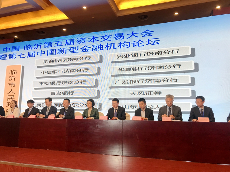 2018年4月26日,中国临沂第五届资本交易大会暨第七届中国新型金融机构论坛大会在临沂蓝海国际饭店举行,临沂市委书记王玉君致辞,市委副书记、代市长孟庆斌主持大会。在本届大会上,我校与临沂市人民政府签署全面战略合作协议,副校长张新代表学校签约,这是本届大会临沂市政府二十余项签约项目中唯一一项人才合作项目。