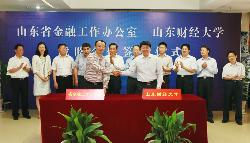 2015年5月25日上午,学校与山东省金融工作办公室战略合作签约仪式在舜耕校区举行。省金融办主任李永健、副主任初明锋、山东财经大学校长卓志、党委副书记张东超、副校长綦好东出席仪式。初明锋与綦好东代表双方签署战略合作协议。仪式由张东超主持。