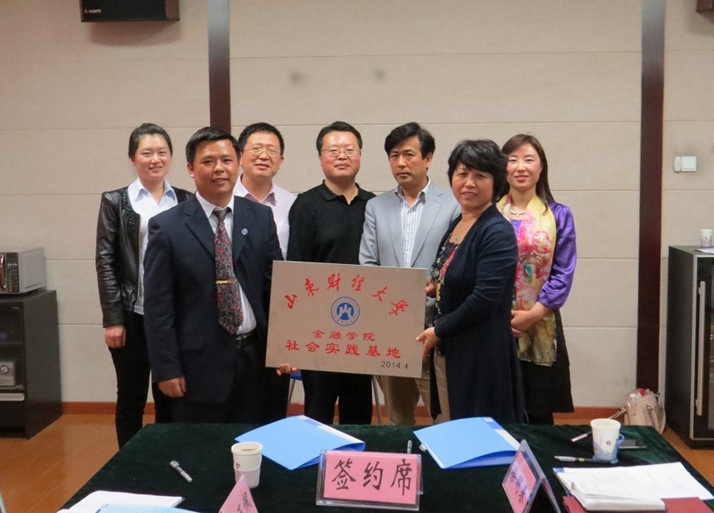 2014年4月9日下午,金融学院山东亿盛集团社会实践基地签约及授牌仪式在金融学院会议室举行。金融学院党总支书记唐磊、常务副院长张志元,山东亿盛集团总经理翟士龙、业务部主管蔡玉佩,山东省委老干部局处长杨宗虎出席了签约授牌仪式。