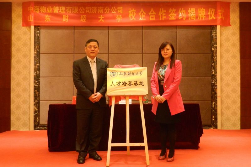 2014年4月23日下午,我校公共管理学院与中海物业管理有限公司济南分公司在中海央墅会议室举行“人才培养基地”签约揭牌仪式。中海物业管理有限公司济南分公司总经理潘立峰先生、副总经理展军先生,我校公共管理学院有关负责人出席仪式。中海物业济南分公司人事行政部负责人王恒国先生主持仪式。