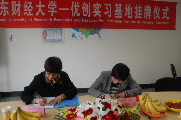2013年4月1日,外国语学院大学生社会实践基地签约暨揭牌仪式在优创(济南)数据技术有限公司举行。优创(济南)数据技术有限公司人力资源部经理李飒、主管王欣欣,外国语学院党总支副书记崔东峰,以及外国语学院团总支、就业办相关同志出席了揭牌仪式。