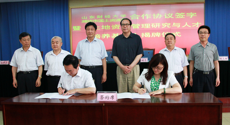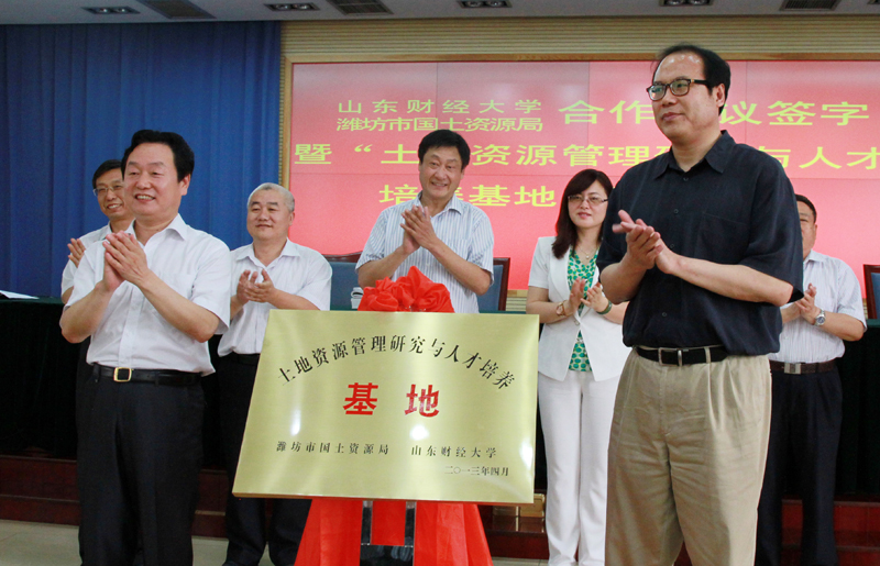 2013年6月8日,公共管理学院与潍坊市国土资源局全面合作协议签约暨“土地资源管理研究与人才培养基地”揭牌仪式在潍坊举行。副校长吴彬与潍坊市国土资源局局长刘树亮共同为“土地资源管理研究与人才培养基地”揭牌并为刘树亮颁发兼职教授聘书。公共管理学院和潍坊市国土资源局相关负责人参加签约仪式。签约仪式由潍坊市国土资源局党委书记刘延民主持。