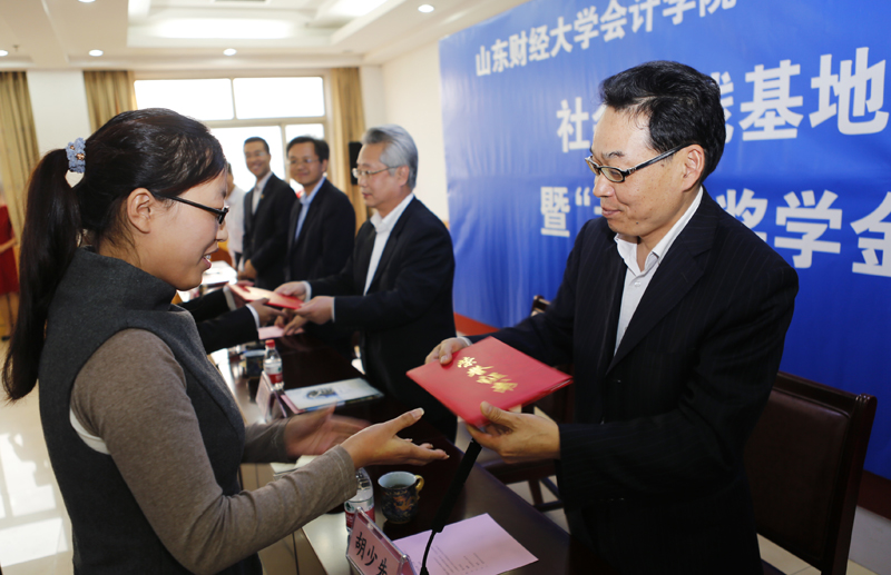胡少先与胡文波共同为实践基地揭牌,刘加宝与会计学院党总支书记曲吉林分别代表天健会计师事务所山东分所和会计学院签署了合作协议书。朱炳有宣读了第一届“天健”奖学金获得者名单。双方领导向会计学院32名优秀学生颁发了奖学金荣誉证书。一等奖学金获得者张德冰代表获奖学生向天健会计师事务所表示感谢,并表示将继续努力学习、提高个人技能,不负众望,向学校和社会各界交出一份满意答卷。
