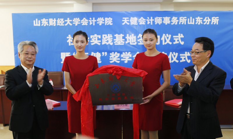 2013年10月17日下午,会计学院与天健会计师事务所山东分所社会实践基地签约仪式暨“天健”奖学金颁奖仪式在燕山校区举行,副校长胡文波出席仪式并讲话。天健会计师事务所首席合伙人兼主任会计师胡少先、天健会计师事务所高级合伙人兼党委常务副书记朱炳有、天健会计师事务所合伙人兼山东分所总经理刘加宝出席仪式。学生工作处、校团委、会计学院负责人及“天健”奖学金获奖学生代表参加仪式。