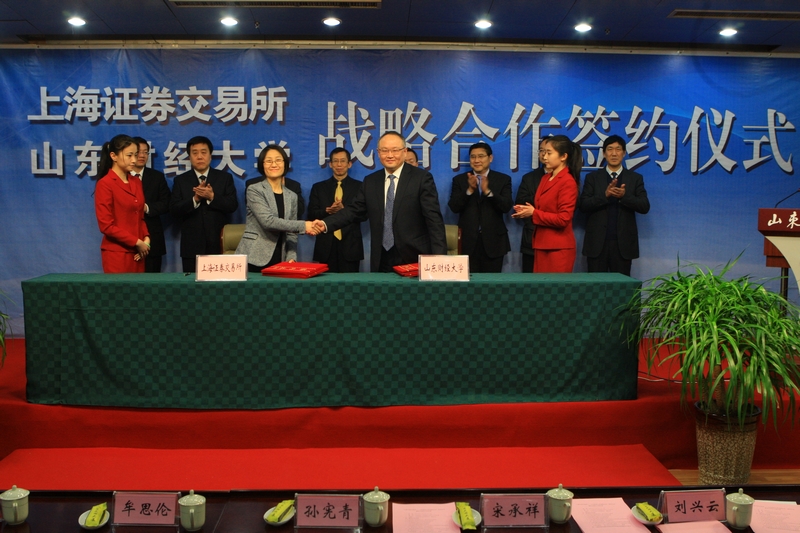 2014年3月4日,上海证券交易所—山东财经大学战略合作协议签约仪式隆重举行。“上海证券交易所-山东资本市场人才培训基地”、“泰山资本市场研究中心”同时揭牌。