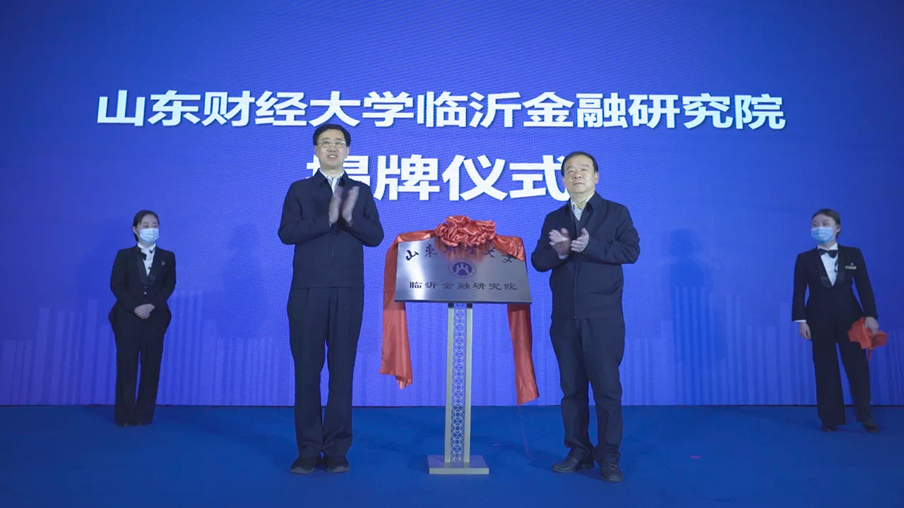 2020年12月19日,山东财经大学临沂金融研究院揭牌仪式在临沂市举行。学校党委书记王邵军,临沂市委常委、常务副市长侯晓滨,山东省地方金融监督管理局规划处处长刘晓东,临沂市河东区区委书记隽新阳,区委副书记、区长姚运明出席活动。揭牌仪式由隽新阳主持。