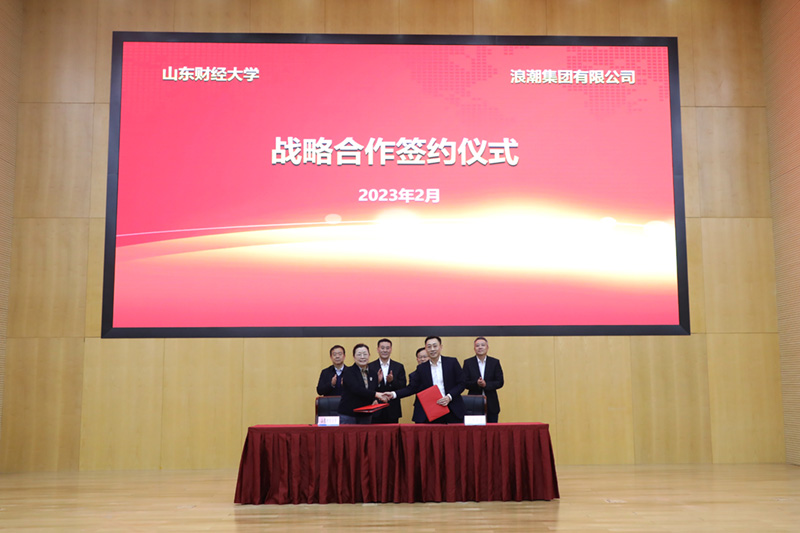 2023年2月6日,山东财经大学、山东省社会治理智能化技术创新中心与浪潮集团及其子公司在济南签订一系列战略合作协议。山东省委政法委副书记刘启超、山东财经大学党委书记王邵军、浪潮集团总经理刘继永等出席签约仪式。