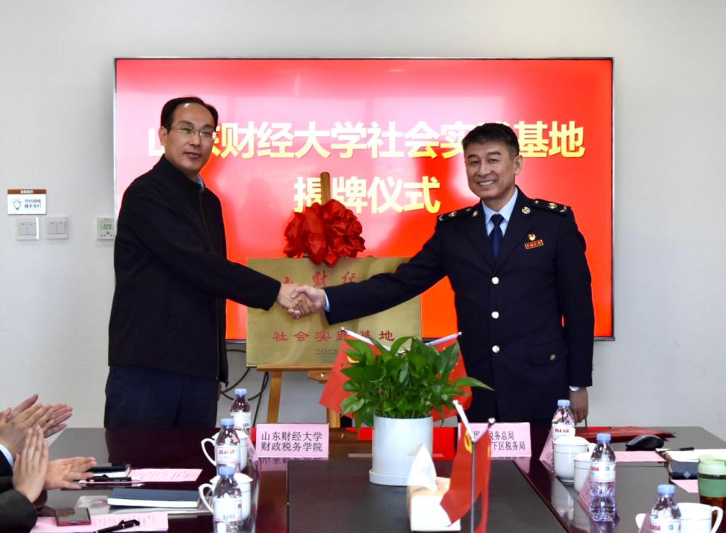 4月7日下午,山东财经大学与国家税务总局济南市历下区税务局战略合作协议签约暨山东财经大学社会实践基地揭牌仪式在历下区政务服务中心举行。财政税务学院党委书记刘波,校团委副书记谷学峰,学院党委副书记张代宝、滕晖,副院长郭健、赵宝廷,税收系主任马静等参加,国家税务总局济南市历下区税务局局长臧军,副局长刘利群、刘耀林等出席。刘利群主持了签约仪式。