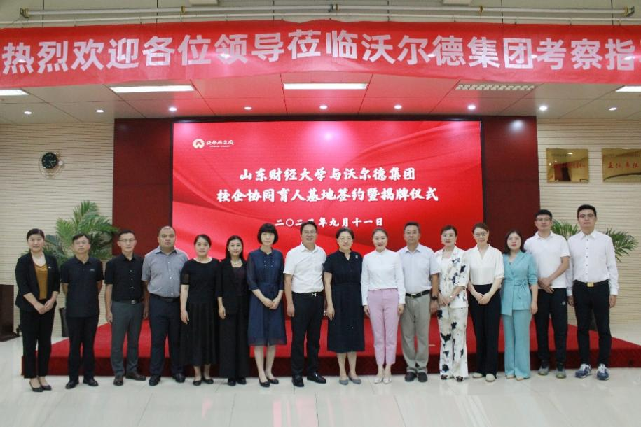 9月11日,山东财经大学与沃尔德集团有限公司校企协同育人基地签约暨揭牌仪式在沃尔德集团顺利举行。副校长张红霞、沃尔德集团董事长林擘、工商管理学院和企业相关人员出席仪式,本次活动由沃尔德集团总裁、1999级校友商雪梅主持。