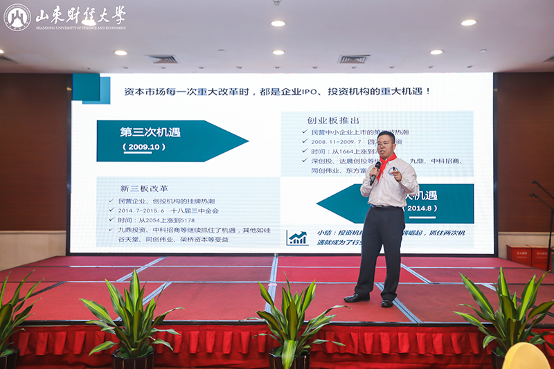 潘明星教授应邀作了《走进新时代的税制改革》的学术报告。山东良福医药公司董事长、90级会计专业校友刘洪亮做了《我的再创业历程》主题演讲。中税集团董事长、89级财政专业校友宋宁作了《“瞰”清趋势,创新校友和大学的共生生态》主题演讲。在本次论坛和年会上,4家江苏校友企业被授牌山东财经大学社会实践基地。