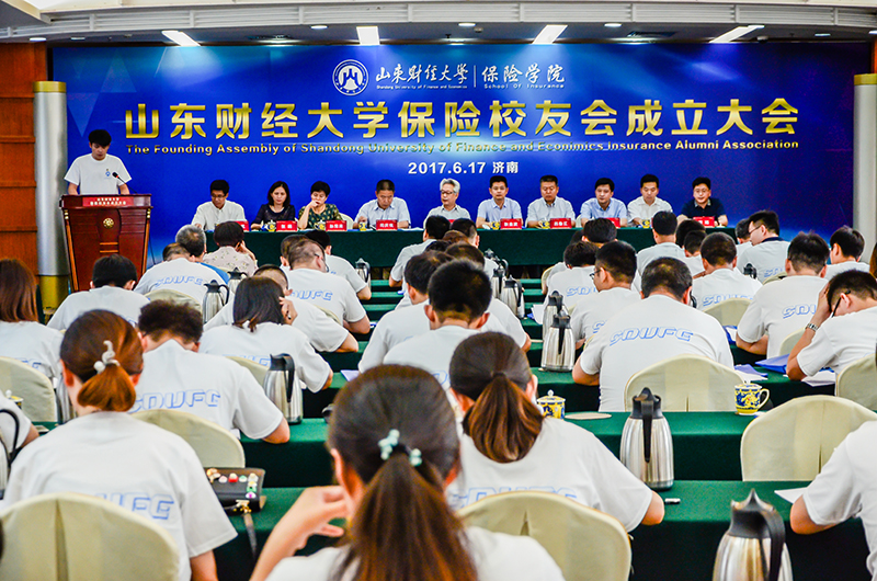 2017年6月17日,山东财经大学保险校友会成立大会在舜耕校区隆重举行。副校长胡文波,校友办、山东广播电视台财经频道有关负责人及来自全国各地的校友代表、保险学院师生代表150余人出席大会。大会由保险学院党委书记朱传武主持。
