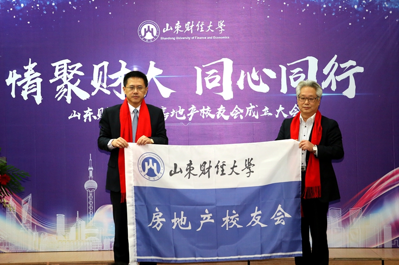 山东师范大学房地产校友会名誉会长程道平、会长赵永佩参加成立大会,山东建筑大学房地产校友会会长周倩、山东财大校友企业商会副会长高涛为山财大房地产校友会成立致贺词。随后,耿金波为山东地平置业有限公司、山东三箭房地产开发有限公司两个校友会活动基地揭牌,工商学院党委书记杨哲代表学校接受了校友会对学校捐赠。
