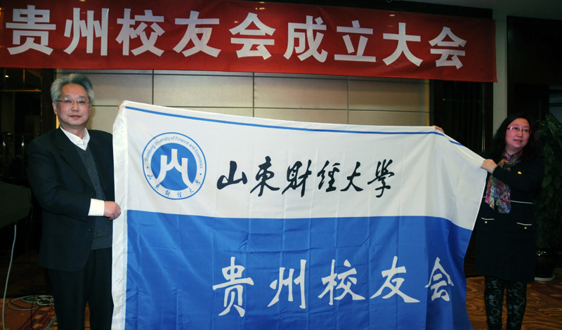 2014年1月11日,山东财经大学贵州校友会成立大会在贵阳市隆重召开,来自贵州省各地的100余名校友代表参加成立大会。副校长、校友总会副会长胡文波到会发表讲话并为贵州校友会授会旗。校友办公室主任、校友总会秘书长耿金波代表校友总会宣布贵州校友会第一届理事会领导机构。
