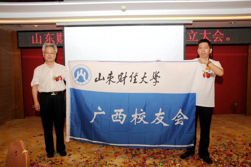 2014年6月7至8日,山东财经大学广西校友会成立大会在南宁金钻国际大酒店举行,副校长、校友总会副会长胡文波到会讲话并为广西校友会授会旗。来自广西各地的近100名校友代表以及专程从北京、山东等地赶赴南宁的广西籍校友参加了成立大会。青岛校友会常务副秘书长陈明专程到会祝贺,上海、北京等校友会发来贺信。