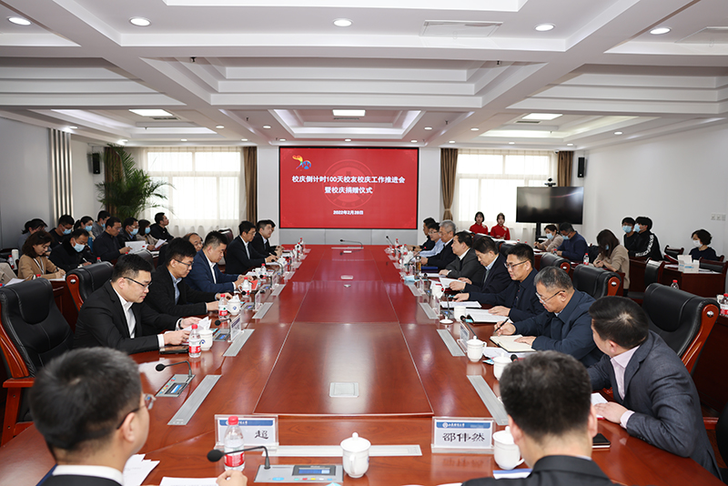 2022年2月28日,我校校庆倒计时100天校友工作推进会暨校庆捐赠仪式在燕山校区举行。校党委书记王邵军、副校长张书学、张新和捐赠嘉宾、校友代表,党委校长办公室、团委、基建处、主校区建设办公室、合作发展处、校友工作办公室等部门主要负责人,各学院校友工作分管领导、负责老师等参加活动。副校长张新主持会议。