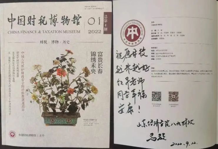 按照活动议程,9月25日上午,与会校友代表来到中国财税博物院参观学习。了解了中国财税的悠久历史和蓬勃发展,让毕业于财经高校的校友们纷纷感慨不枉此行。中国财税博物馆党委书记、馆长、89级财政专业校友马骏向母校老师赠送了中国财税博物馆主办的刊物。