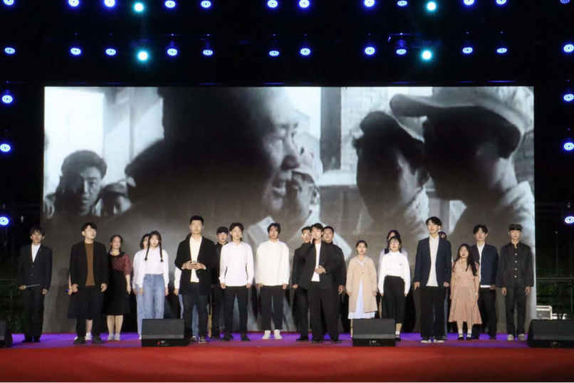 星星之火,可以燎原。舞蹈表演《星星之火》以优美的舞姿勾勒出中国近代的星火燎原,挺起民族脊梁承载中国共产党千年不变的信仰;舞台剧《国歌》借田汉与聂耳创作义勇军进行曲的过程,道尽了在国家生死存亡之际,人民的革命热情和战斗意志,道尽了在和平发展年代,人们的励精图治和勇往直前,时光易变,不变的是人们对梦想的追逐和对国家的热爱,台上同学们激情投入,台下观众热泪盈眶;研究生们带来的歌曲《追寻》,浑厚的声音中蕴含着磅礴力量。