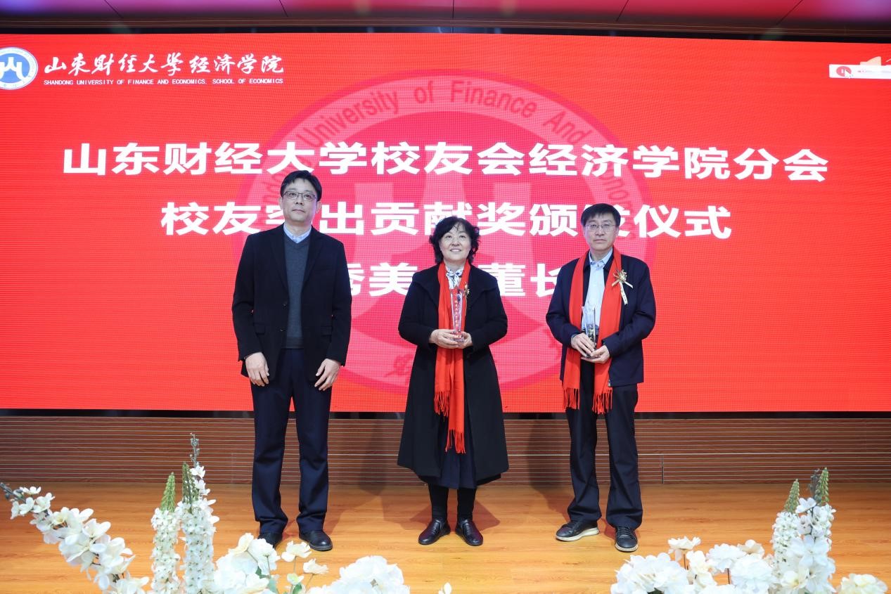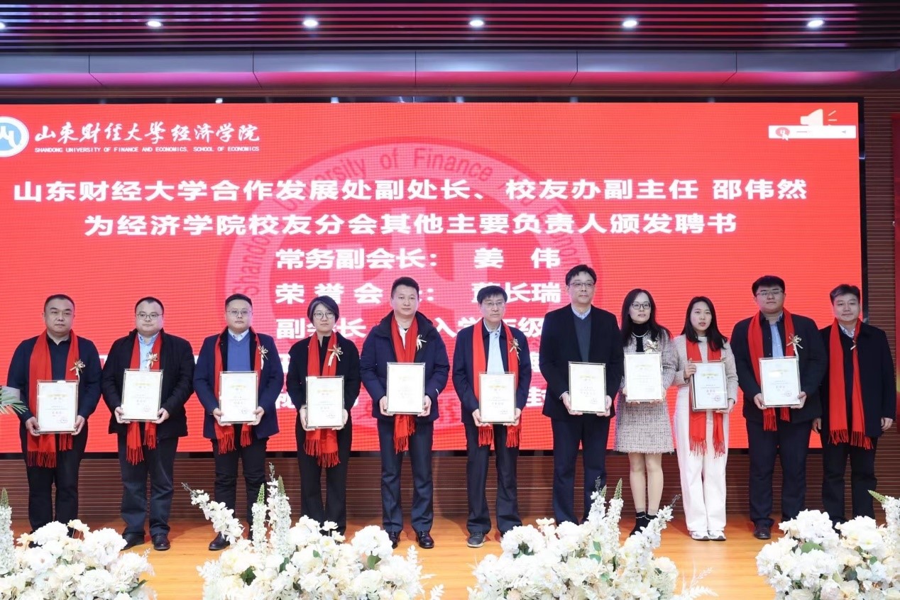 12月28日,山东财经大学校友会经济学院分会成立大会在舜耕校区举办。副校长张新受邀为经济学院校友分会授旗并致辞。