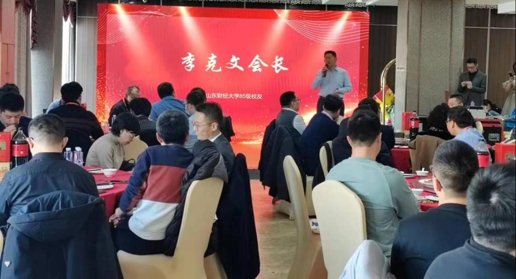 山东财经大学天津校友组织负责人、85级校友李克文对出席年会的母校老师、各地校友代表以及兄弟院校校友会的出席表示热烈欢迎,为母校近年来的卓越发展感到自豪。他从组织换届、会员发展、交流互动等方面回顾了近年来天津校友工作开展情况。他表示天津校友心系母校,天津校友的壮大离不开母校的热切关心和鼎力支持。他提出了对天津校友工作未来发展的规划,希望可以加强校友之间的交流,开展丰富活动,更好地服务广大校友。