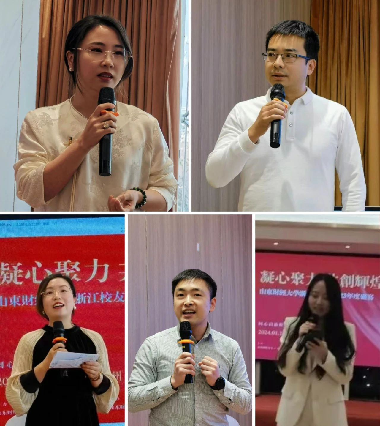 格致读书会发起人、浙江校友赵建华,江苏校友代表钱新进,上海校友代表张莉、安徽校友代表王洋分别就长三角地区协同发展落地可行性事项进行了分享。宁波校友卢鹏巍、台州校友王勇、温州校友吴岳孟、衢州校友王建星、嘉兴校友肖月娇依次分享了对开展地区校友工作的展望。山东九校联盟代表、浙江高校联盟代表、各地校友代表、新生代表分别发言。