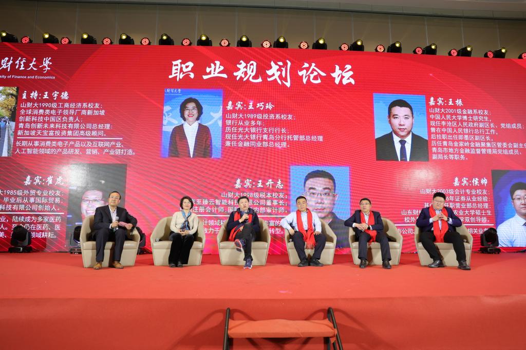 迎接新校友职业规划论坛环节由1990级校友王宇德主持,1985级崔虎、1989级王巧玲、1998级王开志、2001级王振、2003级侯帅等5位来自不同行业的校友,结合自身工作经历和人生感悟,对校友们提出的问题分别进行了细致解答,为校友们在工作、学习、创业等方面遇到的问题答疑解惑。