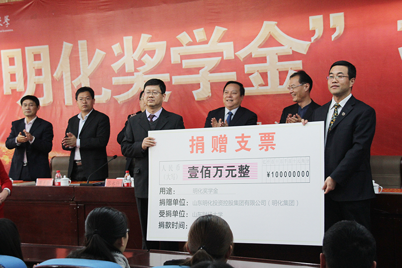 明化奖学金由山东明化投资控股集团有限公司捐资100万在我校设立,每年奖励我校50名家庭经济困难的优秀学生,每人奖励5000元。(供稿审核人:杨扬)