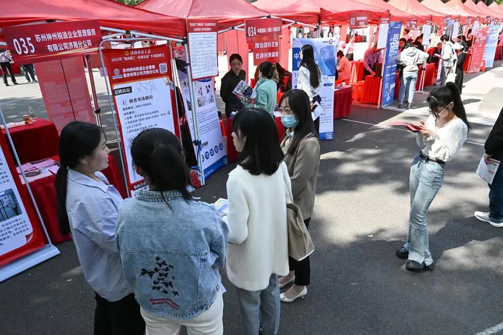 本次招聘会具体由济南市历下区公共就业和人才服务中心、齐鲁晚报和我校就业指导处承办,专门面向我校2023届高校毕业生开展岗位招聘,同时向非毕业生学生提供实习实训、就业见习岗位。活动分为现场招聘、直播带岗和政策宣讲三大板块。招聘会共邀请了中国重型汽车集团有限公司、齐鲁制药集团有限公司、济南二建集团工程有限公司、济南二机床集团有限公司等130余家用人单位,提供岗位2600余个,涉及金融、制造业、信息技术等多个行业。依据学校学科专业特点,这次受邀的金融机构包括中国人寿、华海财险、国联证券、招商证券、国泰君安等在内共有40余家。济南市历下区人社局还设立了政策宣讲专区,面对大学生讲解就业创业政策,发放政策宣传资料。招聘会同时还进行了现场直播带岗、企业代表线上宣讲等活动。我校各学院在现场也开展了访企拓岗促就业活动。用人单位收到简历2000余份。