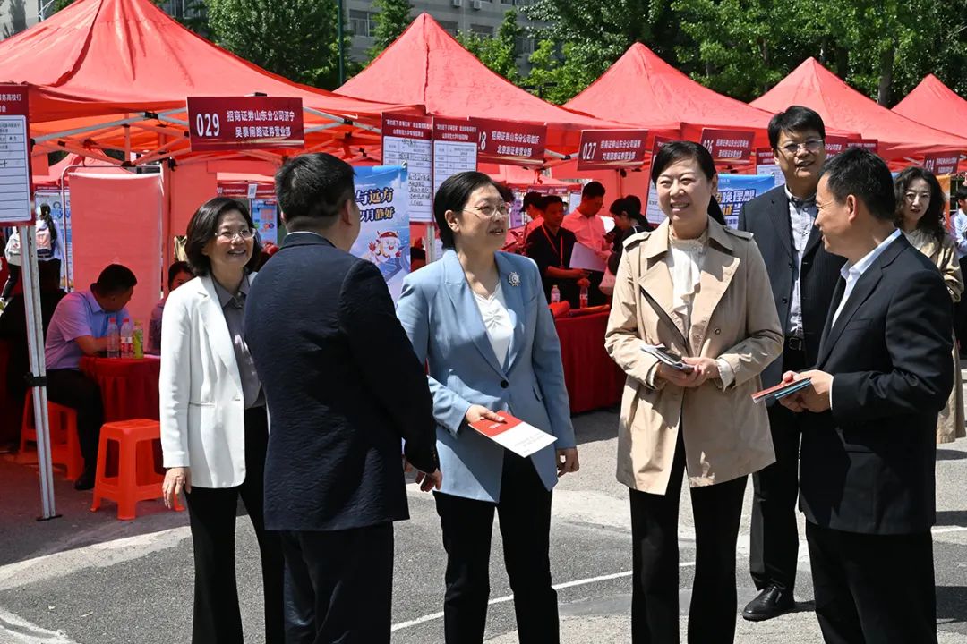 5月9日上午,我校与济南市历下区人力资源和社会保障局联合举办的“职约历下、职等您来”就业服务高校行专场招聘会在燕山校区篮球场举行。副校长张红霞、济南市公共就业服务中心人力资源市场处处长王荣顺,济南市历下区人社局党组成员、二级调研员、公共就业和人才服务中心主任王红等出席活动,就深化校政企人才供需对接和就业育人合作达成合作共识,并与部分重点招聘单位、求职学生进行了现场对接交流。