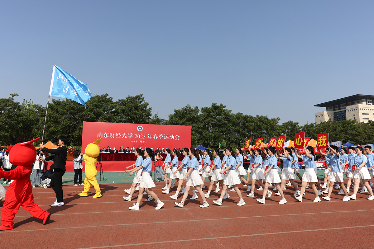 4月27日上午,山东财经大学2023年春季运动会在圣井校区田径场隆重开幕。校党委书记王邵军,党委副书记张培国,副校长陈晓兰、张书学、张新、陶虎,纪委书记、监察专员王福岱,副校长张红霞,校党委委员、统战部部长邓迎迎以及各学院、各职能部门负责人出席开幕式。开幕式由陶虎主持。