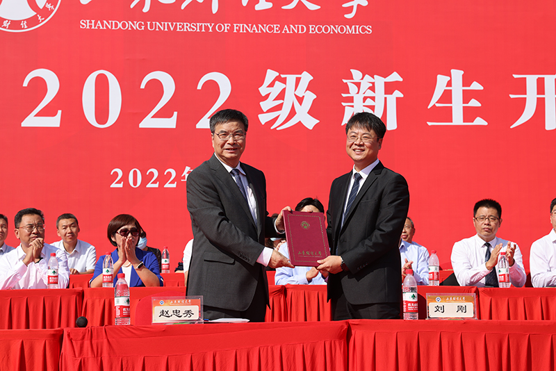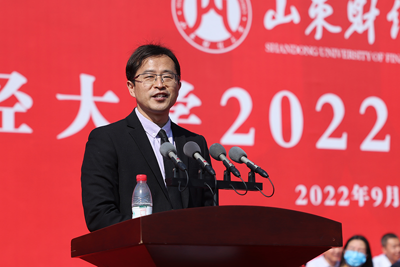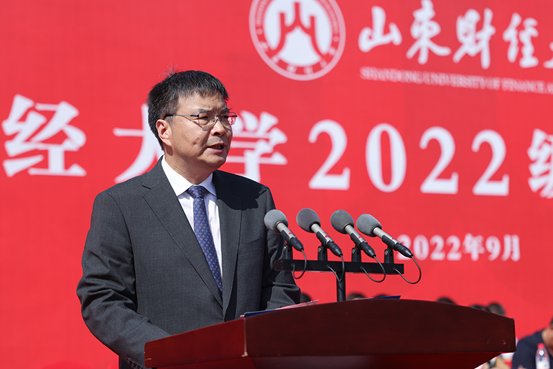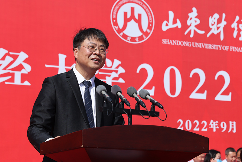 克明峻德,激扬青春梦想;格物致知,创新求真致远。2022年9月30日上午,山东财经大学2022级新生开学典礼在圣井校区田径场举行。校长赵忠秀,校党委副书记张培国,副校长张书学、张新、陶虎,纪委书记、山东省监察委员会驻山东财经大学监察专员王福岱,副校长张红霞、谢申祥,1999级经济学专业校友、中央“马工程”修订专家、山东省泰山学者青年专家、曲阜师范大学副校长刘刚,教师代表、学校“最美教师”和教书育人楷模、全网粉丝450万网红老师、统计与数学学院宋浩副教授等出席典礼。典礼由陶虎主持。