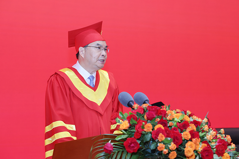 赵忠秀用三个“希望”表达了对全体毕业生的殷切期望与美好祝愿。一是希望大家传承财大精神,做坚定的爱国者。山财大的70年,是始终与国家、民族的发展同向同行、同频共振的70年,希望大家做坚定的爱国者,自觉地把个人前途命运与国家、民族、社会紧密融合在一起,以聪明才智贡献国家发展、以开拓进取服务社会变革,谱写绚丽多彩的新时代青春之歌。二是希望大家传承财大精神,做不懈的奋进者。山财大的70年,是敢为人先、不断奋进的70年,希望大家做不懈的奋进者,将青春与党和人民事业高度契合,在青春的赛道上跑出当代青年的最好成绩。三是希望大家传承财大精神,做明理的学习者。山财大的70年,是坚守特色、匠心育人的70年。希望大家做明理的学习者,要牢记“克明峻德、格物致知”校训蕴含的做人、为学要求,把学习作为永恒课题、终身课题,持续求知、时刻学习,发奋求知、永远学习,练就服务国家、服务社会的过硬本领。