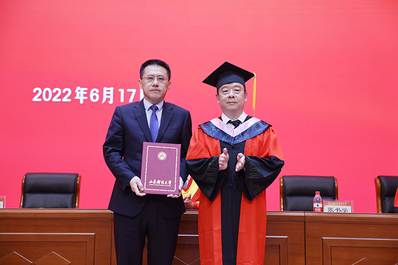 骊歌声起,青春远行。2022年6月17日上午,山东财经大学2022年毕业典礼暨学位授予仪式在圣井校区图书馆报告厅隆重举行。校党委书记王邵军,校长赵忠秀,副校长陈晓兰、张新、张培国、陶虎,校纪委书记、山东省监察委员会驻山东财经大学监察专员王福岱以及各教学单位、部分职能部门负责人,校友代表、教师代表、毕业生代表参加典礼,共同见证毕业的荣耀时刻,分享开启新征程的喜悦。副校长张书学主持了典礼仪式。